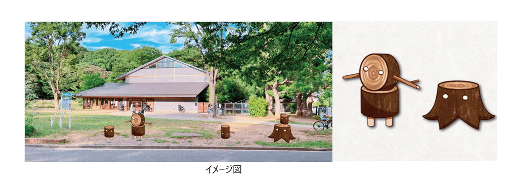 代々木公園の剪定で切り落とし、廃材となった木が不思議な力で蘇り、精霊として戻ってきた「ウッドルント」が、代々木公園の入り口からガーデンへと続く道を彩ります。