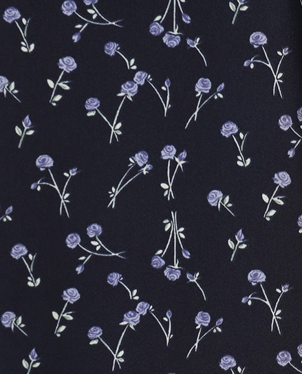 小さなバラの花が散りばめられた上品なプリントのワンピースに、ジャケット見えするカーディガンを合わせた通勤にもぴったりなスタイル。