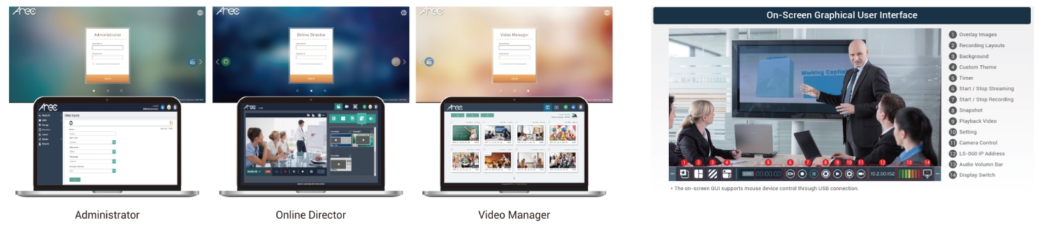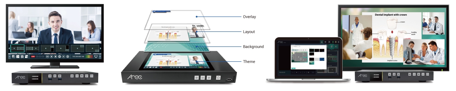 1回のボタン操作でHDMI信号やIPストリームをキャプチャします。録画をおこない、画面のテーマを切り替え、ビデオをネットワークストレージやクラウドプラットフォームにアップロードすることも簡単に実現できます。