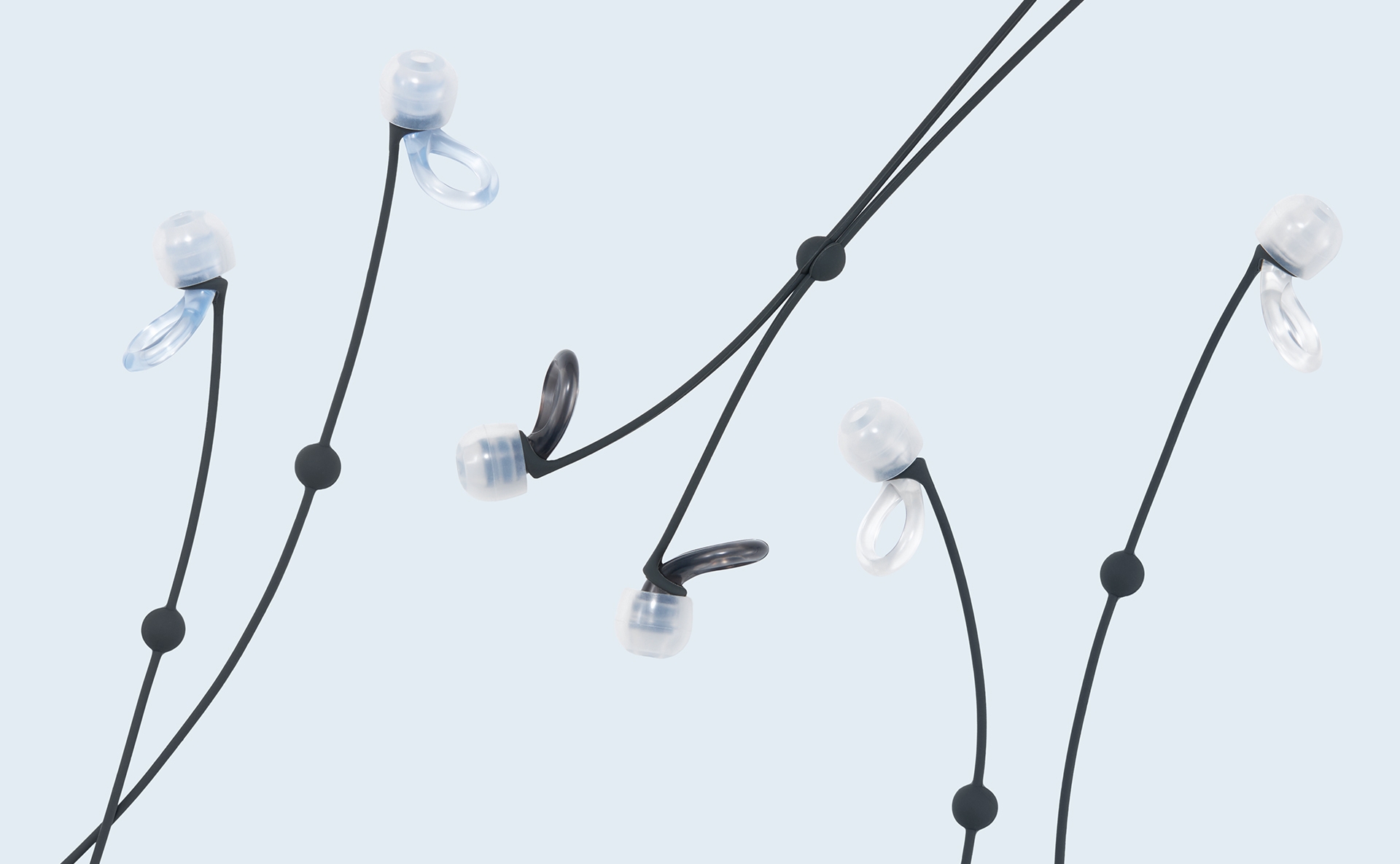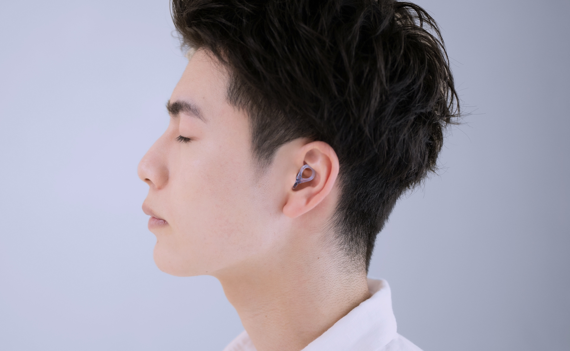 クリア、ブラック、ブルーの3色をラインアップ。有機的なフォルムと透明感のあるデザインが、上品なアクセサリーのように耳元をさりげなく引き立てます。