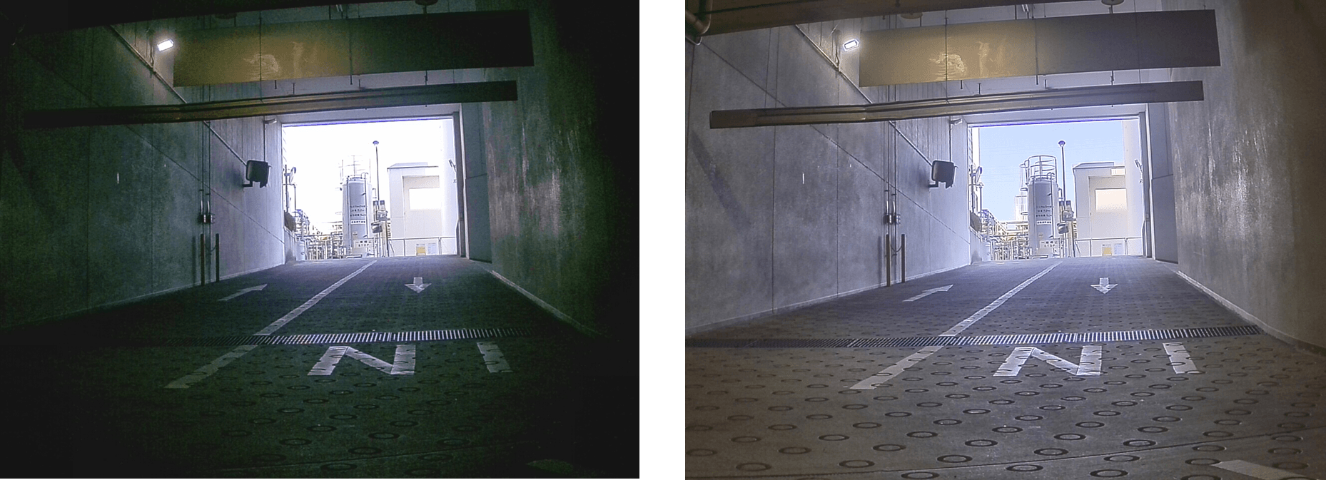 - 暗所や明暗差の大きな環境下においても120dBのハイダイナミックレンジによる高画質な撮像を実現