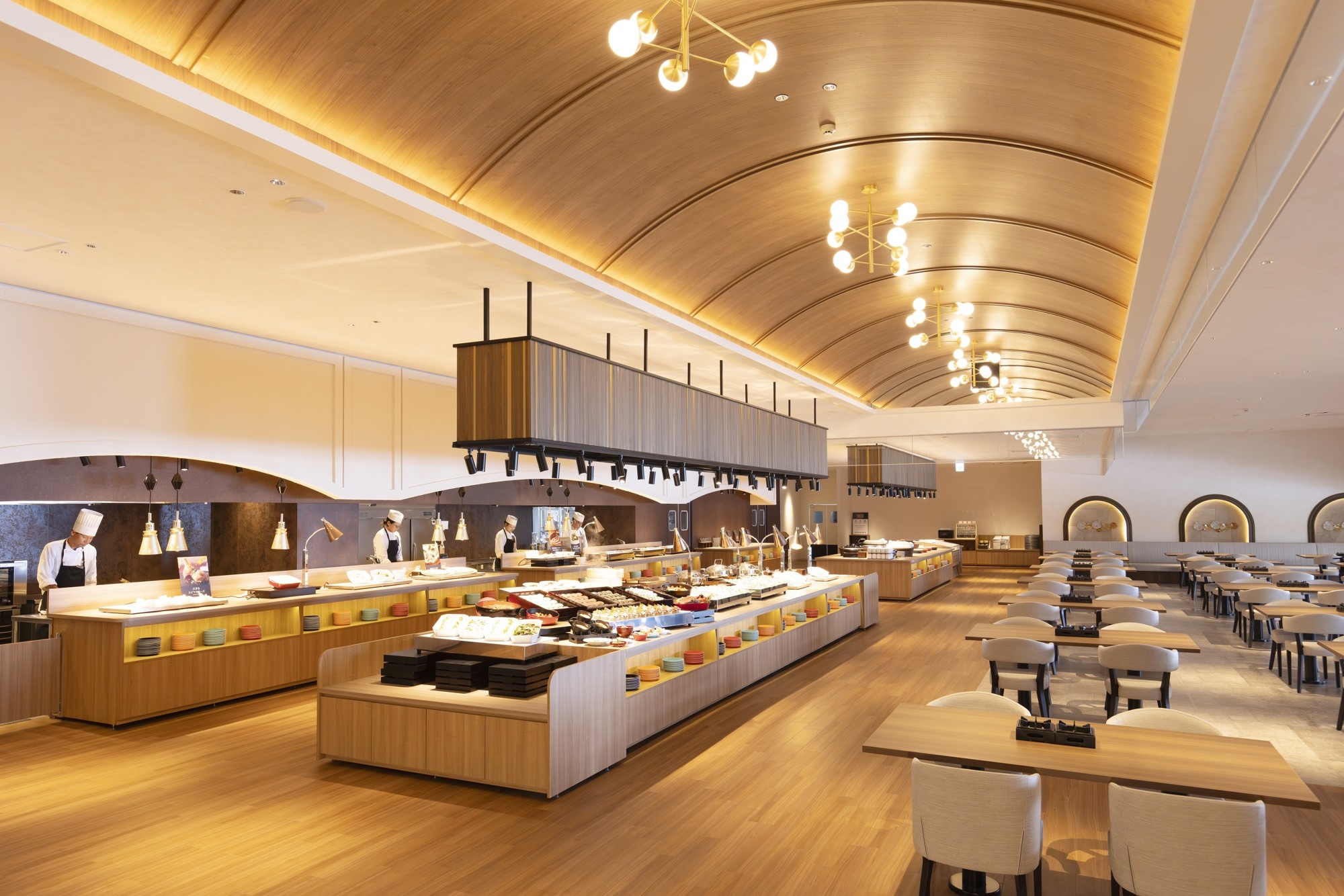 イタリアの田舎町をイメージした、温かくほっと一息つけるような雰囲気のレストランでは、伊勢志摩の食材を使用した地中海グルメをお楽しみいただけます。地中海風のパエリアや南イタリアの郷土料理で、濃厚でありながらさわやかな後味が特徴の地中海風レモンクリームパスタ、地中海野菜のトマトソースでいただく三重県産豚のシュニッツェルなど、華やかなお料理をご用意しております。また「オールインクルーシブ」を採用しているので、夕食時のアルコールはすべて飲み放題。三重県のお酒もご用意しております。「ゆったりと、たおやかに。」旅先ならではの優雅で贅沢なお食事を満喫ください。