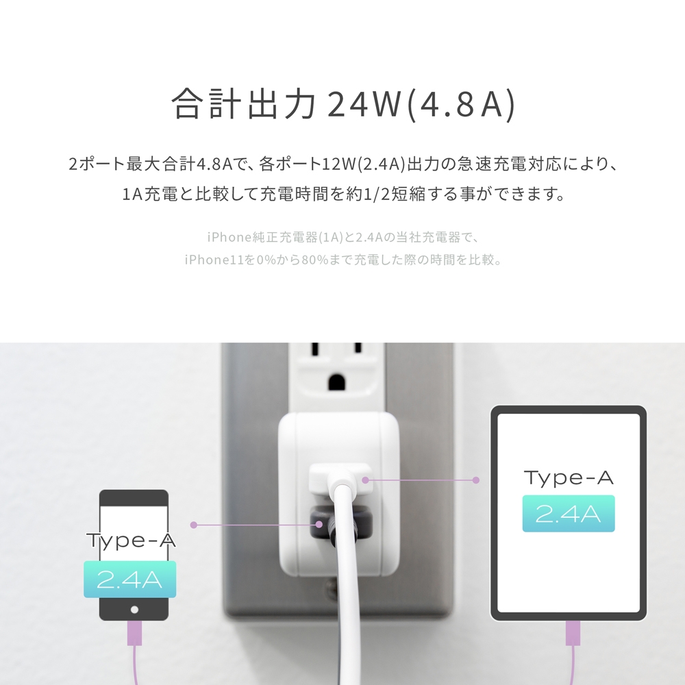 出力電流:各ポート最大2.4A出力 合計 4.8A 24W