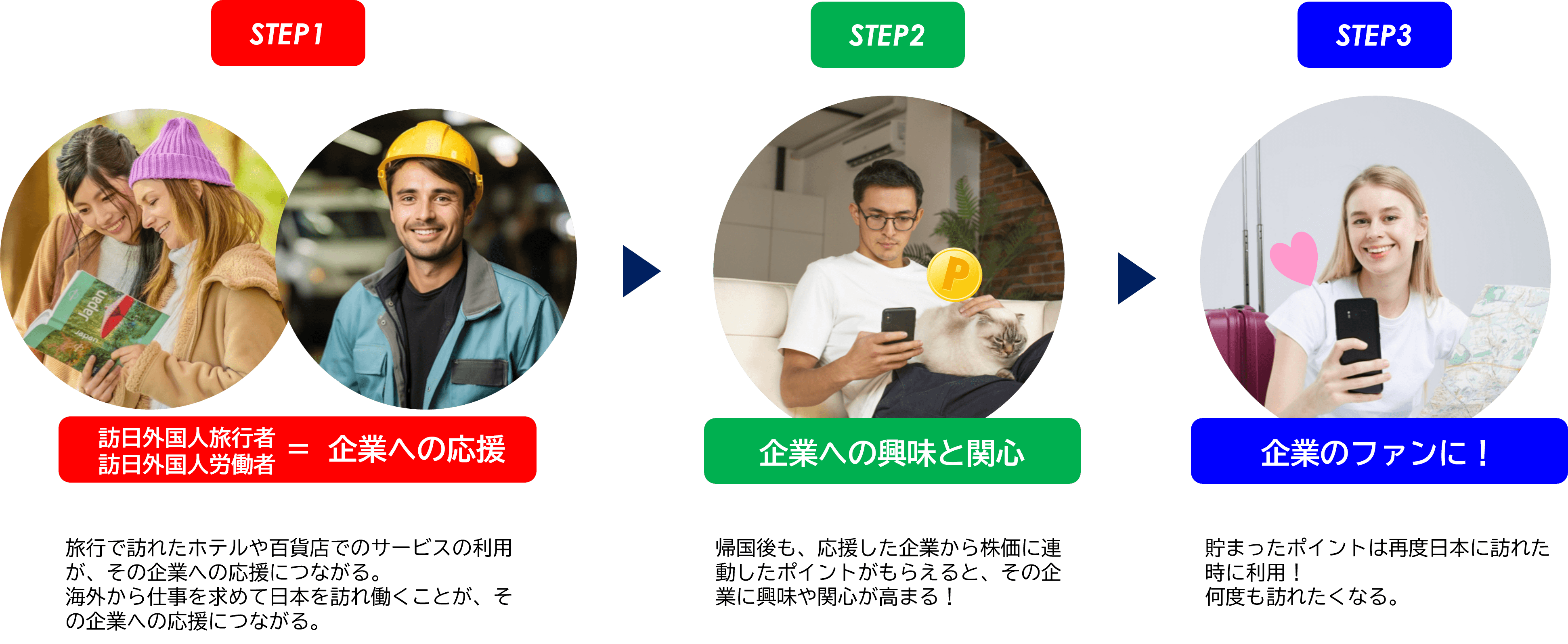 私たちは、"生活と投資がつながり、人と社会が結び付き発展するインフラサービスになる"をミッションに掲げ、企業の株価と連動してポイントが増減する『株価連動型ポイント運用システム』を開発し、「投資体験」や「株主体験」ができるユニークなサービスを提供しています。ポイントのままで、金融商品の株価に連動してポイントが増減する「StockPoint」は、金融機関に口座を開くことなく、どなたでも気軽にポイントで疑似投資を体験することが可能。現在「StockPoint」を含め5つのアプリと、企業のファン育成を推進する「ココカブ」、企業を応援するサイト「愛され企業さーち」を運営。