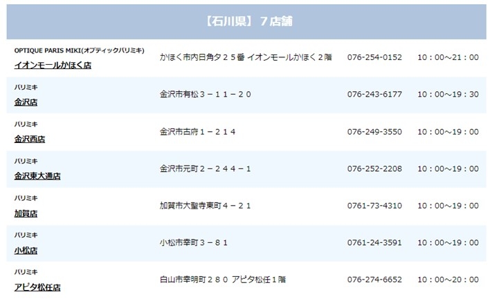 連絡先 TEL:0761-73-4310(パリミキ加賀店)