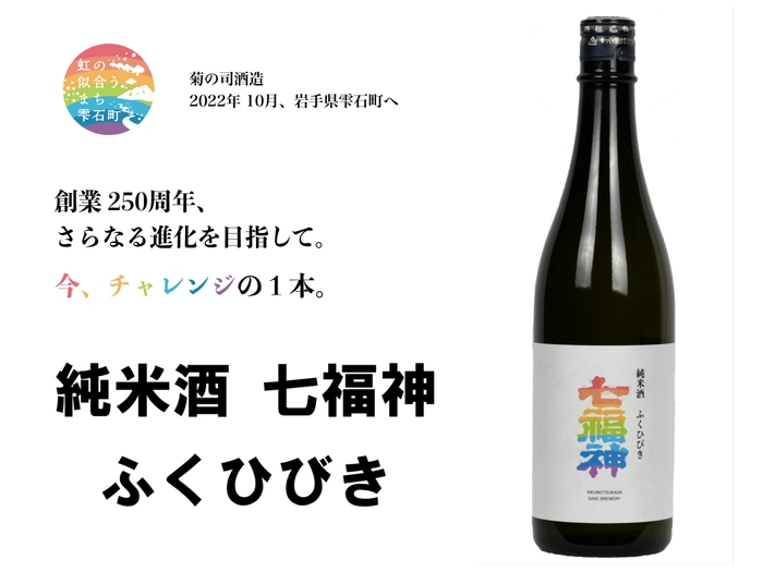 節目の年に、未来へ向けたチャレンジの第一歩として発売される本酒は、菊の司酒造の代表的な銘柄「七福神」のラインナップとして誕生します。発売するラベルには、雫石町の公式ロゴ由来の虹の配色を用いるなど、さらなる挑戦を続ける菊の司酒造が自信をもって発売する1本です。