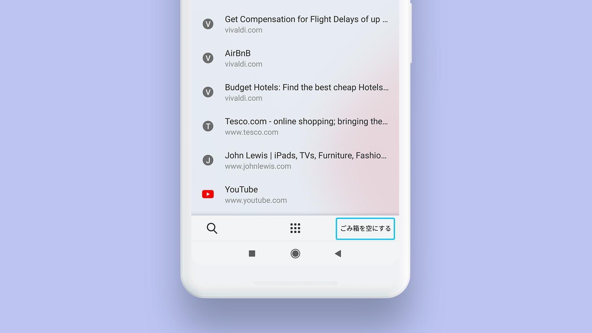 Vivaldiのデフォルト検索エンジンを、デバイスのホーム画面に検索ウィジェットとして配置できます。