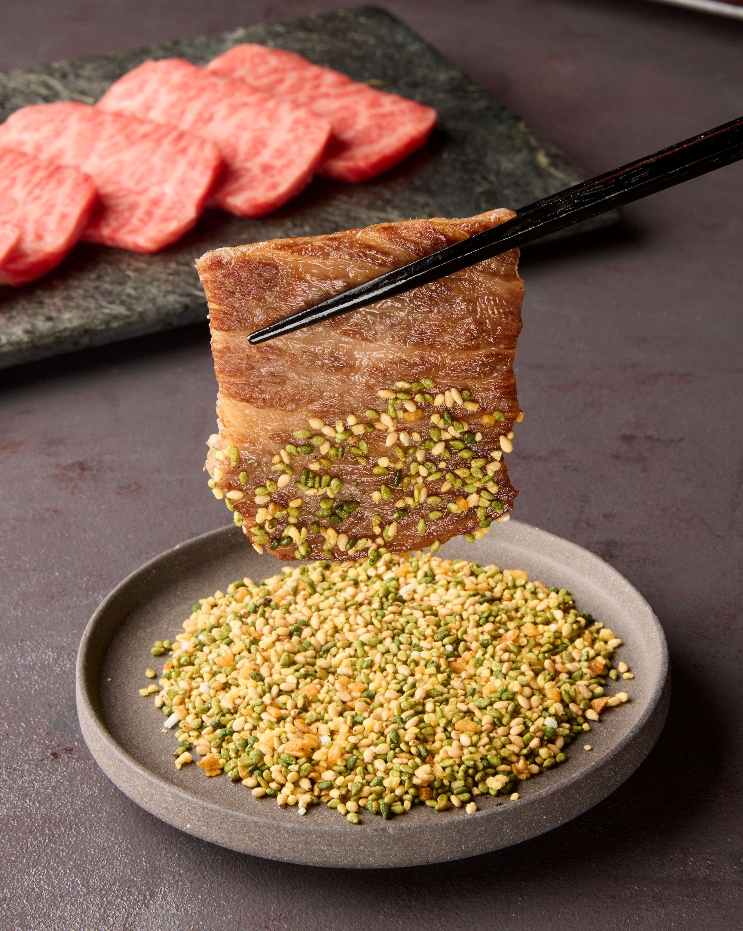 香り高く甘みがある和牛の脂に、ゴマと醤油、ワサビ、ガーリック、オニオン、塩が一丸となって溶け込みます。