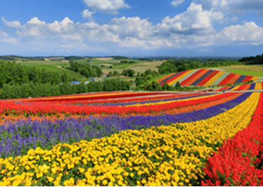 美瑛町は、北海道のほぼ中央に位置し、十勝岳連峰の山麓に広がるまちです。十勝岳付近で起きた火山活動によって生まれた大地に、自然と人の営みによって育まれた美しい丘陵景観が広がっています。その丘には人々の苦労と希望の結晶として豊かな農作物が実り、温泉は癒しを与え、その恵みとして貴重な地域資源が多く存在します。