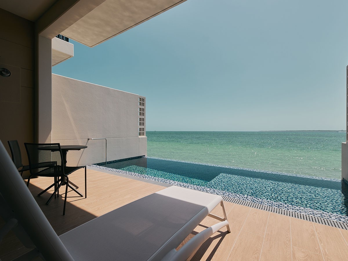 全98室中、1階の28室がプライベートプール付き。 水平線に溶け込むようなインフィニティプールの開放感を自室で味わえます。