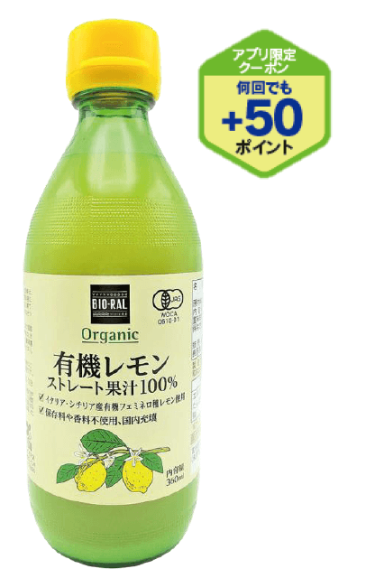 イタリアシチリア産の有機フェミネロ種のレモンを100%使用した、有機レモン果汁。保存料・香料不使用。