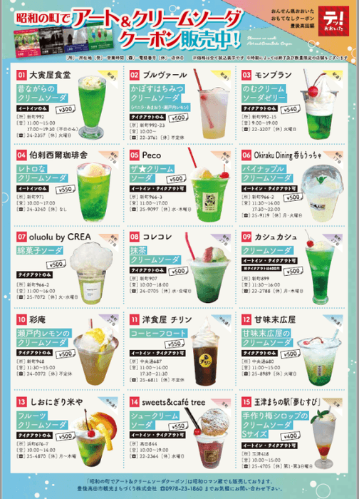 市内のデジタルアート(共通3館券)と昭和の町商店街の15店舗で提供する❝クリームソーダ❞を楽しめるクーポン券を販売しています。