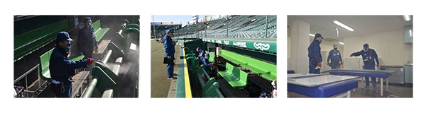この施工は、阪神甲子園球場において、選手や観客の皆さまが安心してご利用いただけるよう、新型コロナウイルス感染防止策の一つとして行うものです。