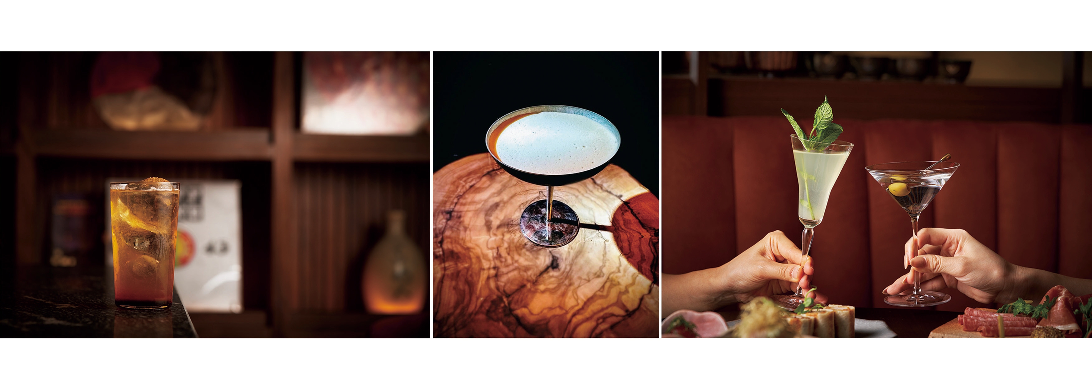 バーの名前である「Den」は隠れ家を意味し、その名の通り都会の喧騒を離れた特別な場所として、訪れるゲストに贅沢な時間を届けます。ワイン貯蔵庫を思わせる落ち着いたデザインは、クールさと柔らかな曲線が調和した独自の美的センスを持ち、モダンでありながら温かみのある雰囲気を作り出しています。京都とタイのエッセンスを織り交ぜたオリジナルカクテルやモクテルが豊富に揃っており、そのユニークさが「Den Kyoto」の特徴です。ソムリエがそれぞれの好みに合った一杯を提供し、落ち着いた空間でゆったりとリラックスできる贅沢な時間をお楽しみいただけます。