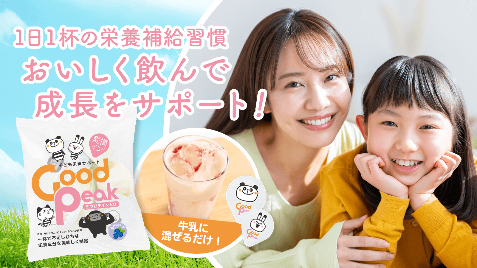 牛乳に混ぜて美味しく栄養補給!子どもの成長サポート飲料 『GOOD PEAK』の先行販売を5月15日よりMakuakeにて開始!