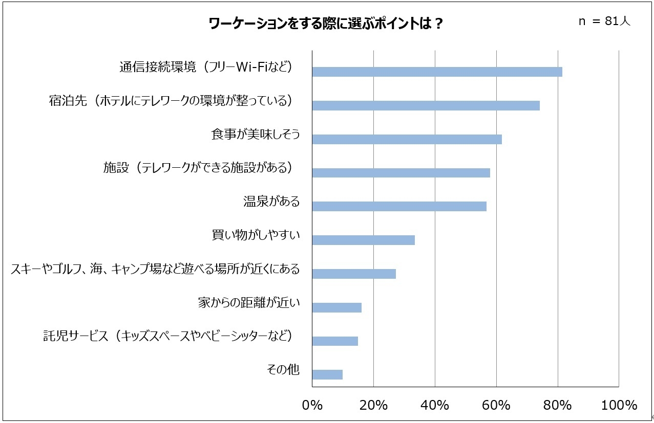 ワーケーションする際に選ぶポイントは、第1位が「通信接続環境(フリーWi-Fiなど)」