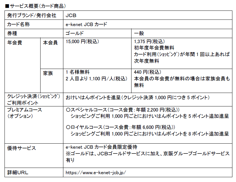 京阪ホールディングス ならびに 京阪カードが、JCBと提携し、 3月17日(月)より 「e-kenet JCBカード」の募集を開始