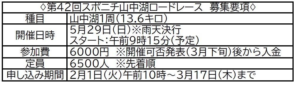 5月29日号砲!「第42回スポニチ山中湖ロードレース」申し込み受付開始