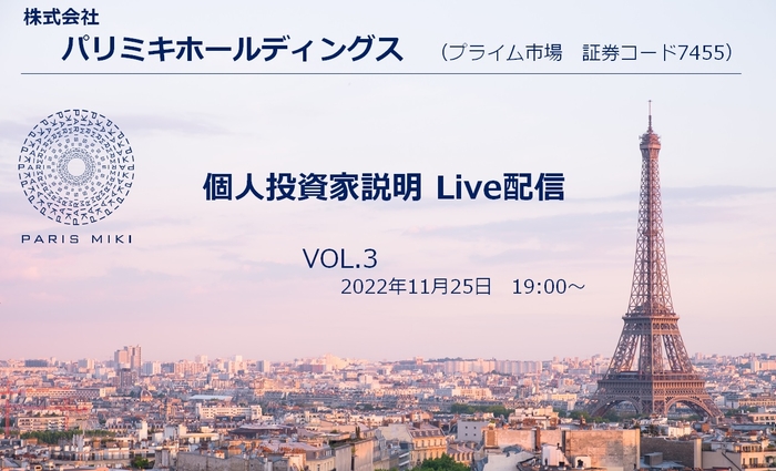 「パリミキ」を展開している株式会社パリミキホールディングス(本社:東京都港区、代表取締役社長:澤田将広)は、ログミー株式会社が提供する、投資家と上場企業との新たな出会いや相互理解を促進し、投資機会を創出するプラットフォーム「logmi IR Live」のトライアル運用に参加しております。