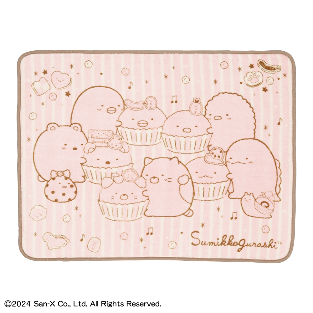 そのほか、すみっコたちをモチーフとしたカップケーキのマスコット、水彩タッチデザインのメラミン製のプレートとカトラリーのアソート、ジャガード仕様のまるでドーナツのようなパッケージングのハンドタオル、ラバークリップとジッパーバッグの選べるアソートと、いずれも「スイーツタイム」テーマのデザインをふんだんに使用したアイテムとなっています。