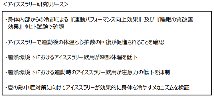 弊社では、アイススラリーに関する研究を数多く行っております。以下は、2022年6月~2024年5月に発信した研究リリースになりますので、こちらも合わせてご確認ください。