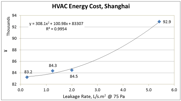 日本の気候に近い上海の延べ床面積2,300m2の商業施設において、従来の一般的な気密性能をIECC基準に向上させた場合、空調にかかるコストが年間約175,000円削減されるという試算※1も出ています(現状の為替レート(20.70円/人民元)で換算)。