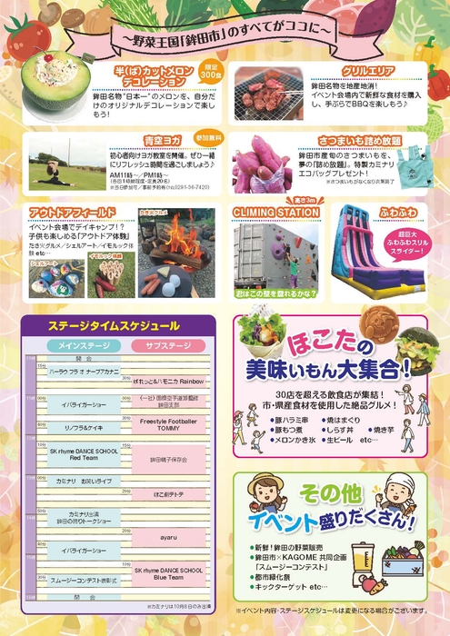 鉾田市の特産品を使用した「食」や、鉾田ならではの「体験」が楽しめるイベントです。