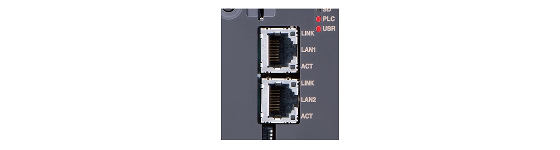 2つのEthernetポートを標準搭載することで、異なるプロトコルのコンバートが容易に行えます。これにより、複数のオープンネットワークを統合した柔軟なシステム構築ができます。さらに、PLC内部で実行されている情報をブラウザ経由で表示できるWeb Visualizationを搭載しました。
