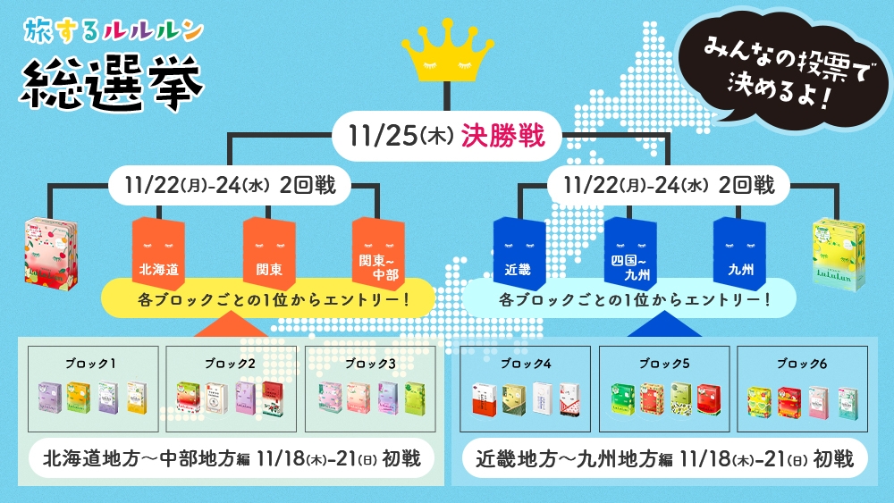 ご当地フェイスマスク「旅するルルルン」の人気No1を決定するTwitterキャンペーンをルルルン公式アカウントにて開催中!