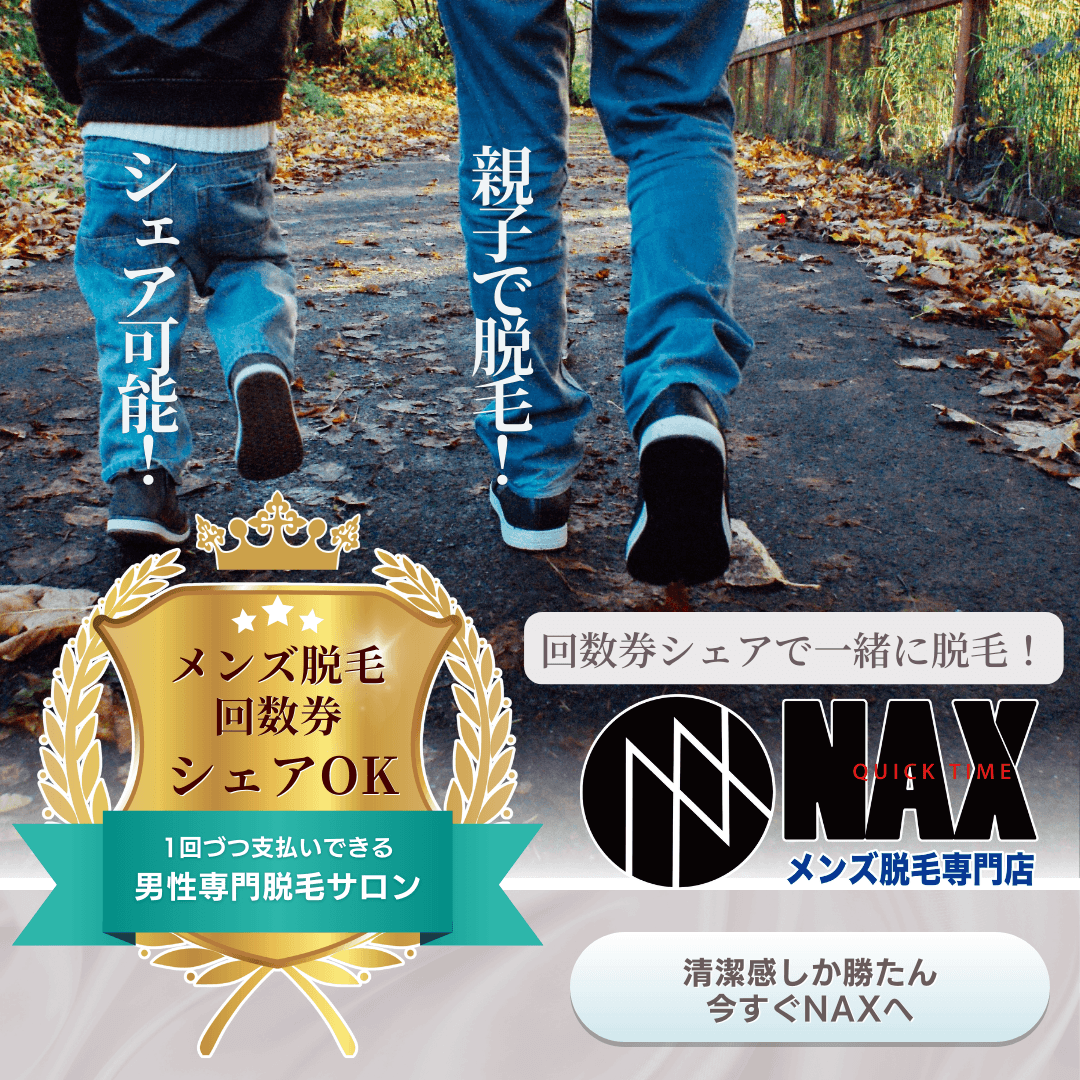 メンズ脱毛サロンNAXでは、4回分の回数券を親子や友人とシェアできる『シェア脱毛』が可能です!