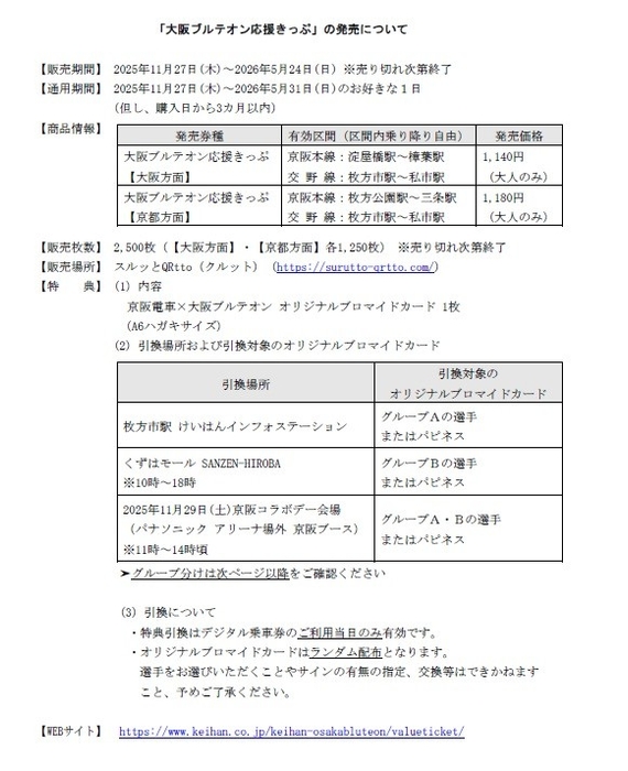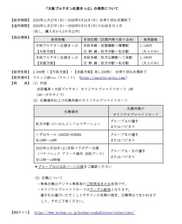 京阪グループ×大阪ブルテオン連携企画 11月27日(木)よりオリジナル特典付き京阪電車デジタル乗車券「大阪ブルテオン応援きっぷ」を発売! | NEWSCAST