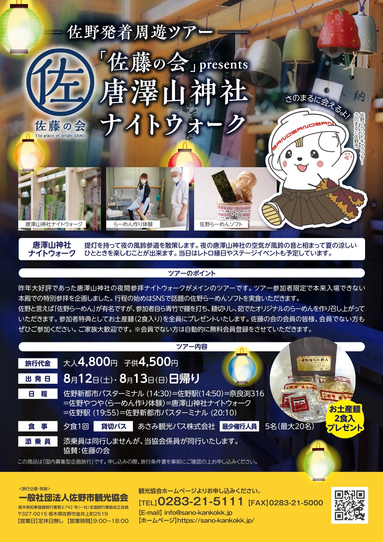 【栃木県佐野市】佐藤の会presents 唐澤山神社ナイトウォークツアーを募集