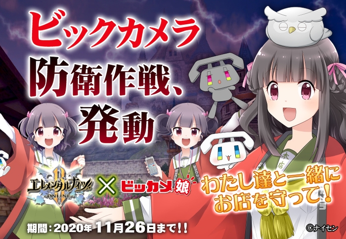 株式会社ウインライトは、本格MMORPG『エレメンタルナイツオンラインR』で、11月12日メンテナンス後より、ビッカメ娘コラボイベント第2弾「ビッカメ娘エレナイ防衛作戦」を開始いたしました。
