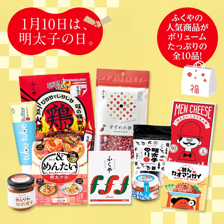 たっぷり10品入ったお得なセット商品『明太子の日 福箱』を送料無料で販売中。