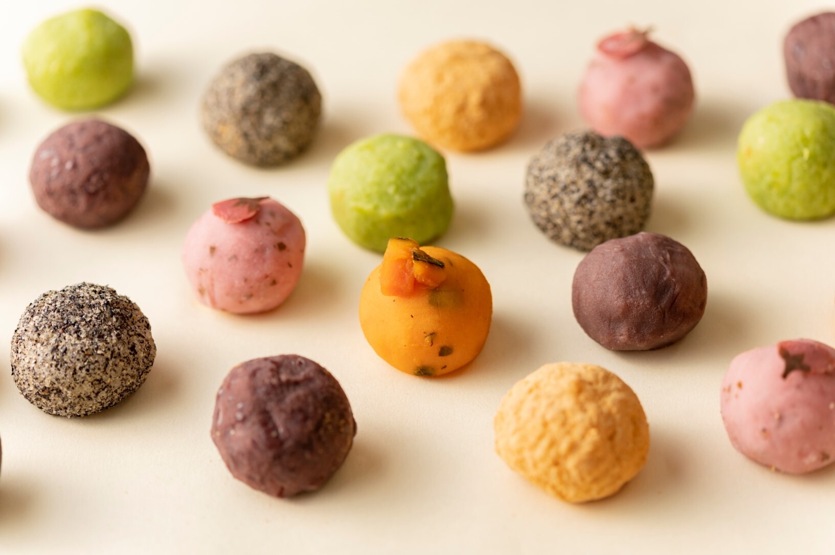 製餡メーカーの直売ブランドならではの、糖度を抑えたあんこで、小豆本来の美味しさをお楽しみいただくことをベースに、あんこの新たな可能性発信を目指した、カラフルで珍しい餡子のおはぎを揃えております。あんこそれぞれと、店舗工房内で炊いたもっちりお米をミニおはぎとして一口で7種のおはぎをお楽しみいただけます。ぜひ、会津観光のお土産や、地元会津から大切な方へのお手土産に、七つの会津の福がいっぱいに詰まったカラフルで可愛らしいミニおはぎセットをお楽しみいただければと思います。