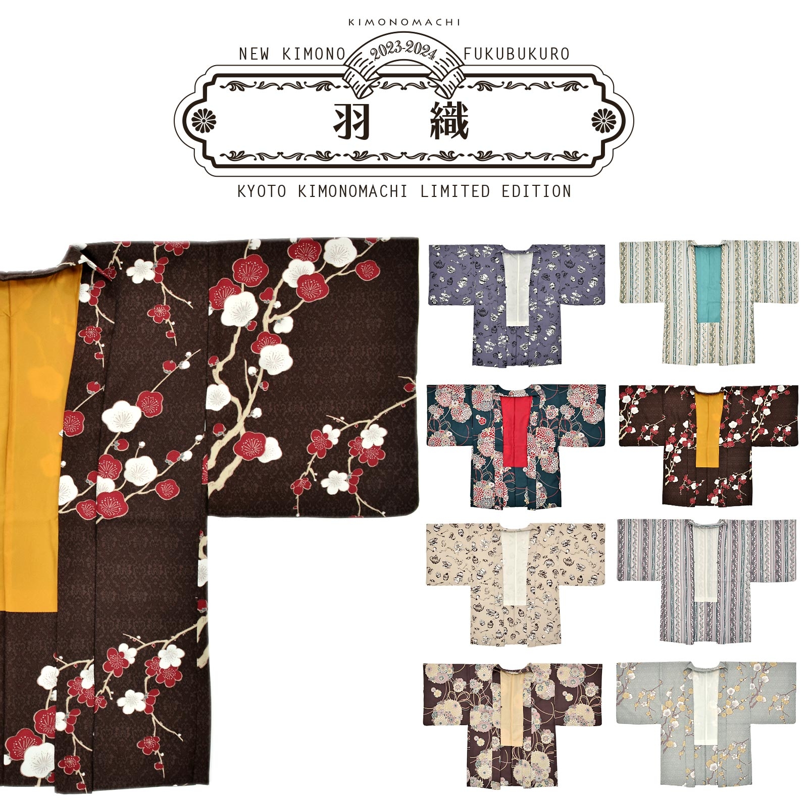 京都発の和装ブランドKIMONOMACHI(有限会社京都きもの町、京都府京都市、代表取締役:久保村一文)は、和装通販ショップ「京都きもの町」にて「KIMONOMACHIオリジナルきもの福袋」2023-2024年度新作コレクションを9月22日に発表しました。その後大反響をいただき、この度2023年9月30日12:00に予約販売を開始します。同年10月下旬頃より発送開始です。同社はメディア衣装提携実績が豊富なブランドです。