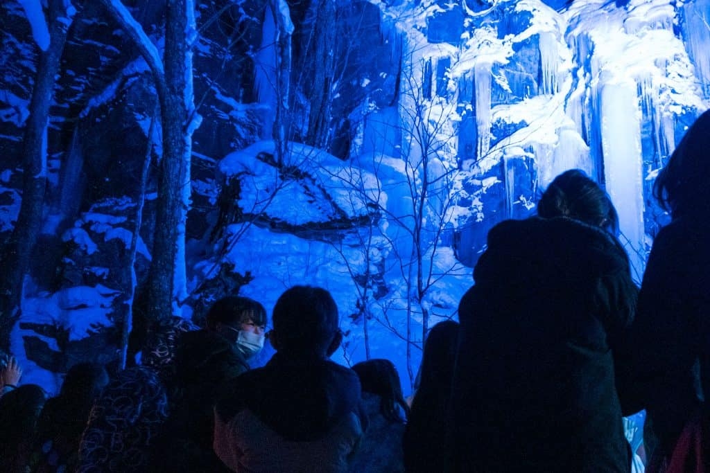 実際にライトアップされた氷瀑の絶景を楽しむ