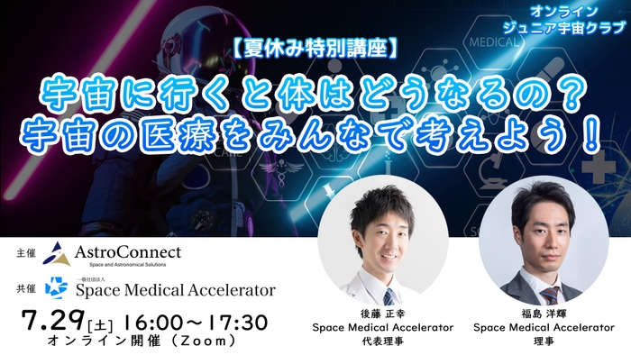 株式会社アストロコネクト(本社:神奈川県川崎市多摩区 代表取締役:荒井大作、以下、アストロコネクト)は、一般社団法人Space Medical Accelerator(所在地:茨城県つくば市吾妻 代表理事:後藤正幸、以下、Space Medical Accelerator)とのコラボレーション企画として、小学生を対象にした「宇宙医療」オンラインワークショップを開催いたします。