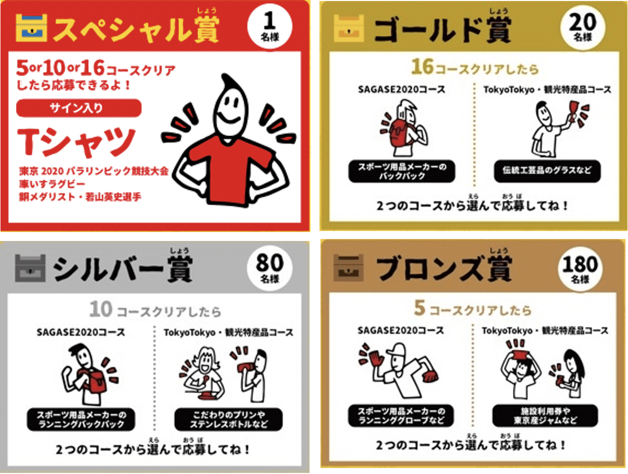 本イベントでは1都4県(東京都・埼玉県・千葉県・神奈川県・山梨県)を舞台に、2021年夏に開催された東京オリンピック・パラリンピック競技大会の会場周辺の観光スポット等を中心に周遊できる16のコースをご用意しています。各コースにはそれぞれ3つの謎があり、それらを解くことで得られるてがかりをもとに宝のありかを見つけていきます。複数のコースをクリアすると応募できる賞品を用意しています。あわせて、本イベントの公式ホームページでは、東京2020大会会場周辺エリアの様々な観光情報を紹介しています。