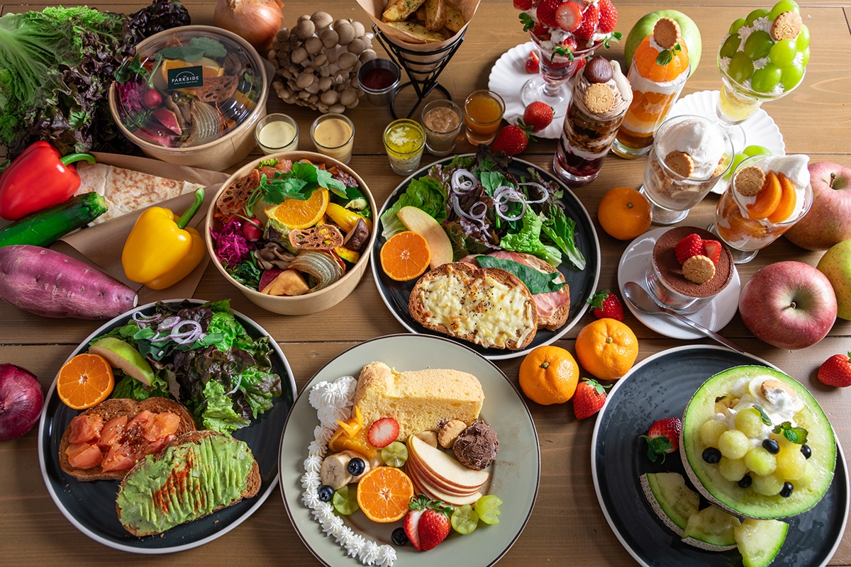 「隣接する大泉緑地でのお花見やピクニックをより楽しんでいただく」をコンセプトに、メインからデザートまで旬の新鮮なお野菜やフルーツをつめ込んだ、the PARKSIDEならではの期間限定テイクアウトメニューです。