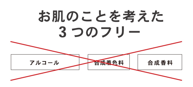 3つのフリーで肌への負担を少なくし、男性だけでなく女性やお子様にもお使い頂ける乳液に。