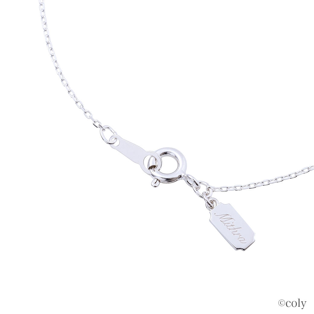 「魔法使いの約束」に登場する北の国の魔法使い、ミスラをイメージしたシルバーネックレスです。ミスラの腕輪をモチーフにしたデザインに、イメージカラーストーンをセット。エンドチャームのプレートには名前を刻印しました。