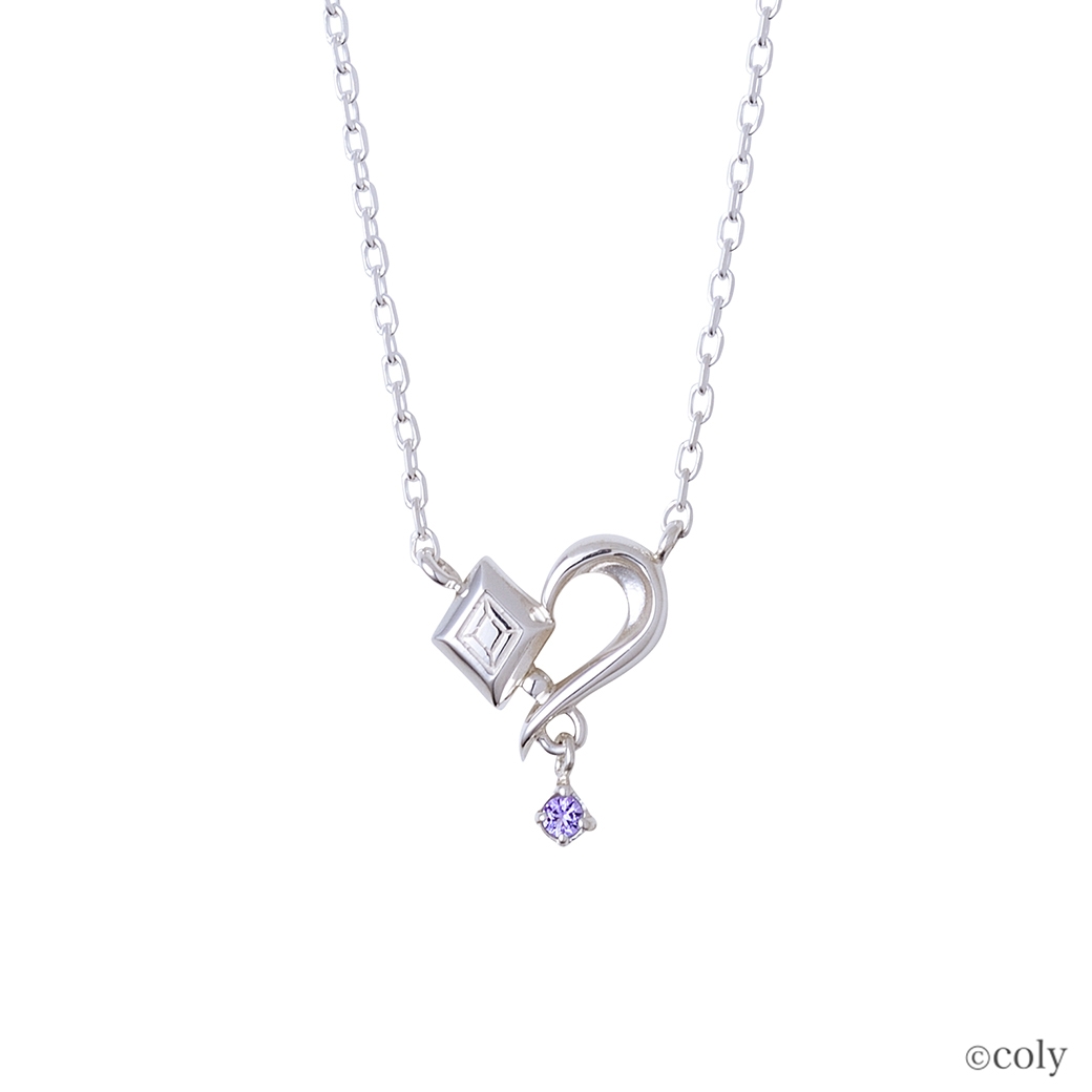「魔法使いの約束」に登場する北の国の魔法使い、スノウをイメージしたシルバーネックレスです。衣装の柄をモチーフにしたデザインに、イメージカラーストーンをセット。エンドチャームのプレートには名前を刻印しました。ホワイトとお揃いのデザインです。