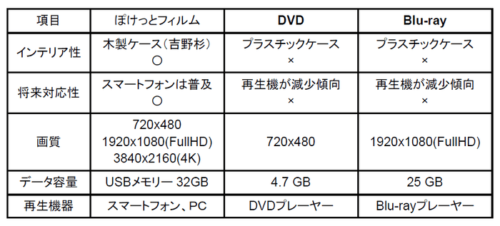 これからDVDやBlu-rayの再生環境が減少していく中で、想い出を“カタチ”として残すことが難しくなる中、「ぽけっとフィルム」は、手に取ることができる温もりあるデジタルの映像アルバムとして誕生しました。