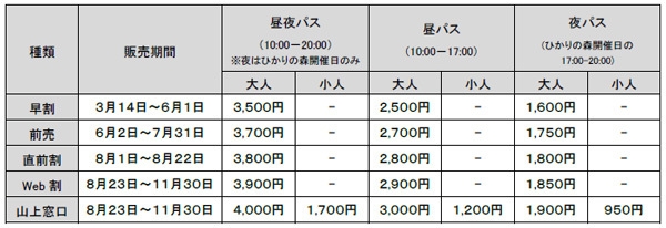 入場できるセット券も販売。(8月23日~11月24日まで)