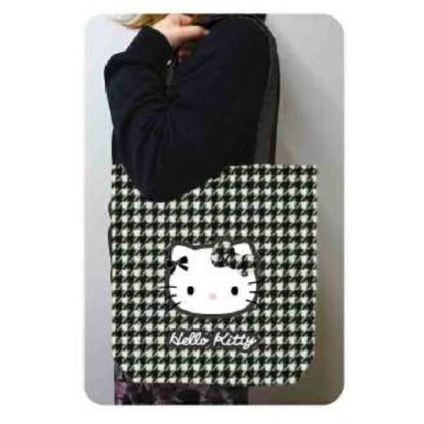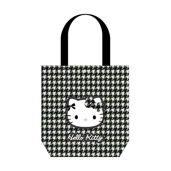 こちらは、「サンリオ ハローキティ 千鳥格子シリーズ お出かけトート ブラック 平成レトロ」。先ほどのブラックカラーバージョンです。モノクロなキティちゃんも素敵すぎる…。どっちにしようか迷む可愛さ。