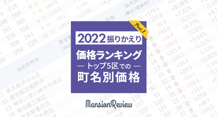 「マンションレビュー」のプレスリリースで注目エリアの1年を振りかえり! 2022年中古マンション価格ランキング、トップ5区での町名別推定価格を調査