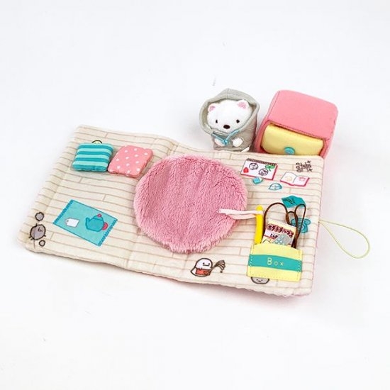 絵本を開くと、中がリビングになっています。BOXや細かなアイテムもあるので、これ一つでも十分楽しめますね。しろくまのぬいぐるみも付属しています。