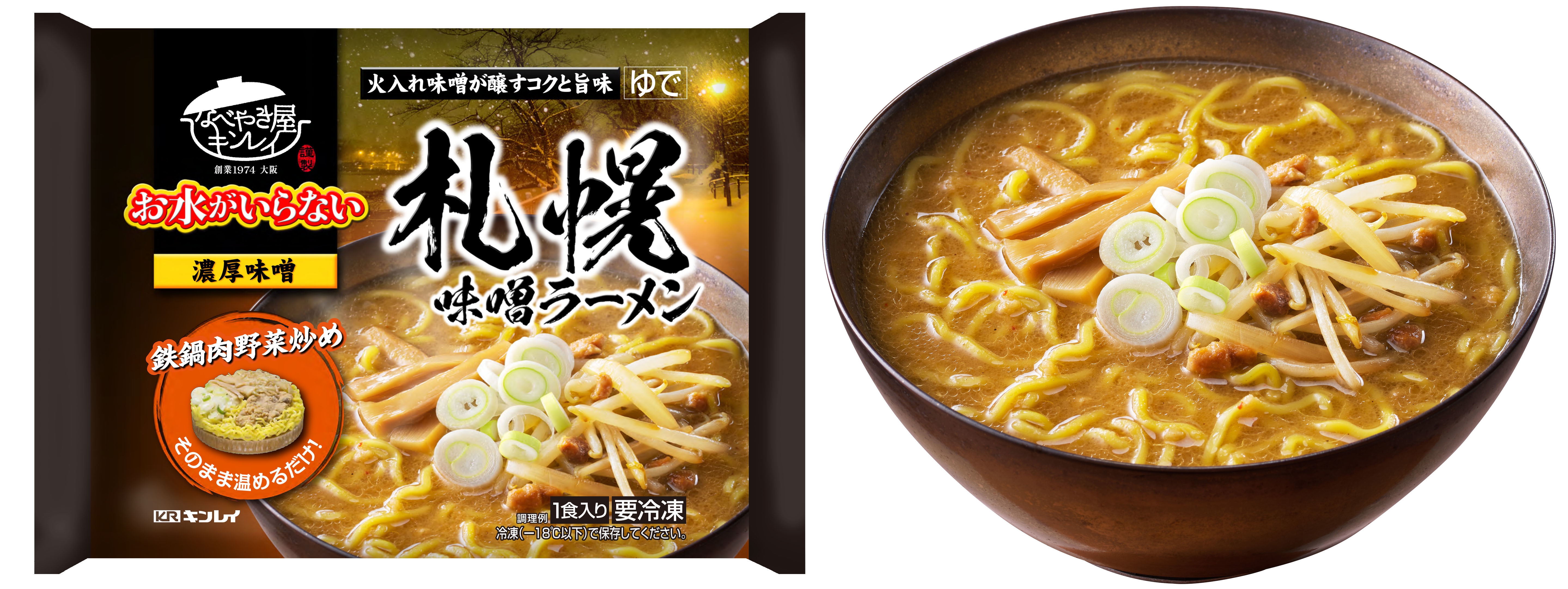 株式会社キンレイ(本社:京都市伏見区、代表取締役社長:和田博行)は、シリーズ発売から10年で3,000%強の伸び率※となり、累計販売数1億3千万食を突破した冷凍食品「お水がいらない」シリーズより、「お水がいらない 札幌味噌ラーメン」を2021年秋冬向け新商品として2021年8月23日(月)より全国の量販店の冷凍コーナー・公式オンラインショップ( http://kinrei-shop.jp )にて順次発売します。