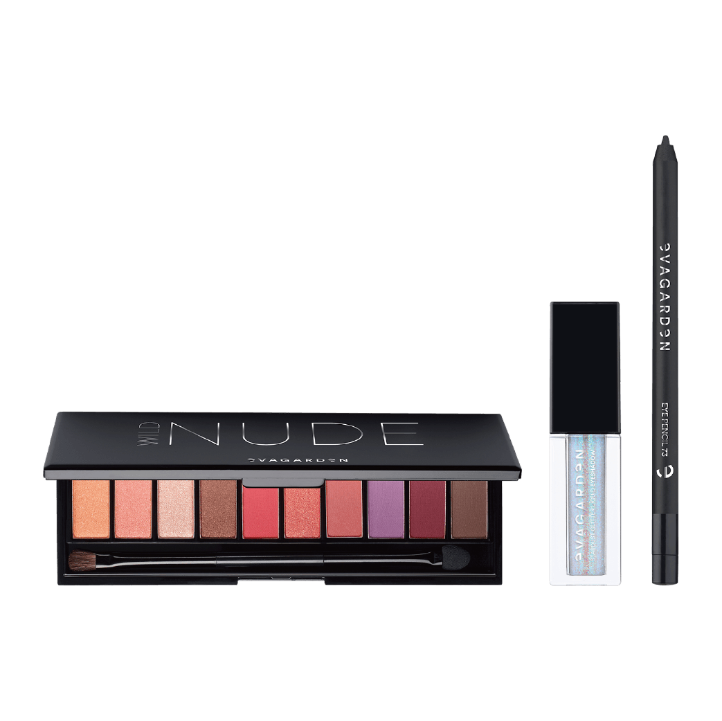 しっとりしながらつけたての発色が続く「アイシャドウ パレット ワイルドヌード」に、華やかな光を目元に与える「スターダスト グリッター アイシャドウ(限定色420)」と美しいラインを長時間キープできる「アイライナーペンシル(BK or BR)」が揃ったセットで、ナチュラルメイクからトレンドメイクまで幅広いアイメイクをお楽しみいただけます。